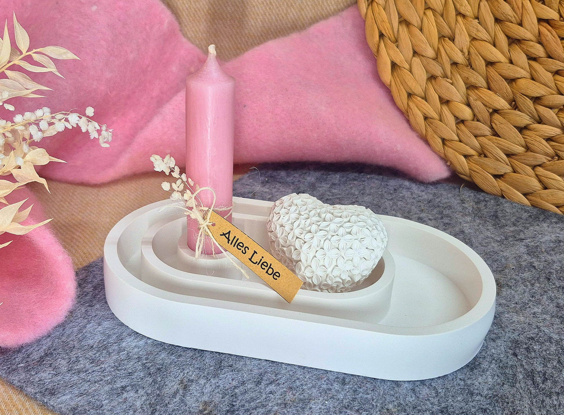 Das Herz liegt locker in der Schale, sodass du flexibel dekorieren kannst.